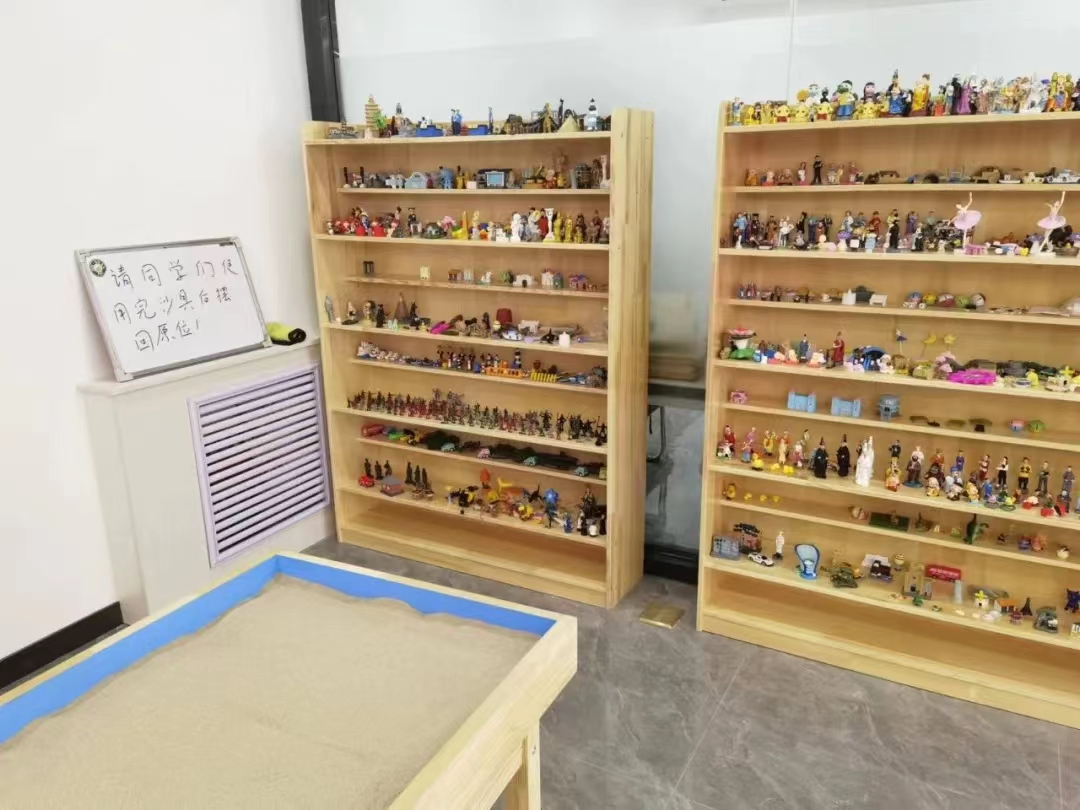 配有沙盘游戏工具,可通过沙盘游戏对来访者进行心理治疗和心理教育,并可承担个体咨询功能。