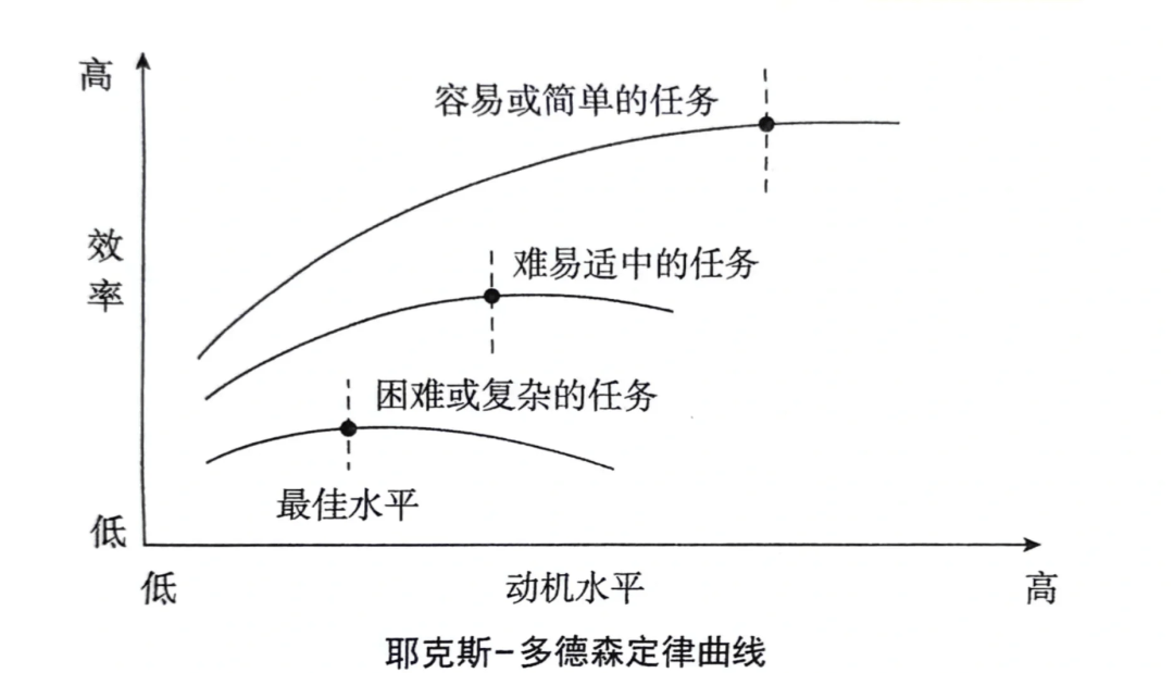 除此之外,耶克斯-多德森定律还告诉我们,不同难度的事件具有不同的最佳动机水平。简而言之,简单事件更需要高动机,而困难事件更需要低动机。当面对困难任务时,我们要做的反而是放平心态,让紧绷的大脑神经放松下来。