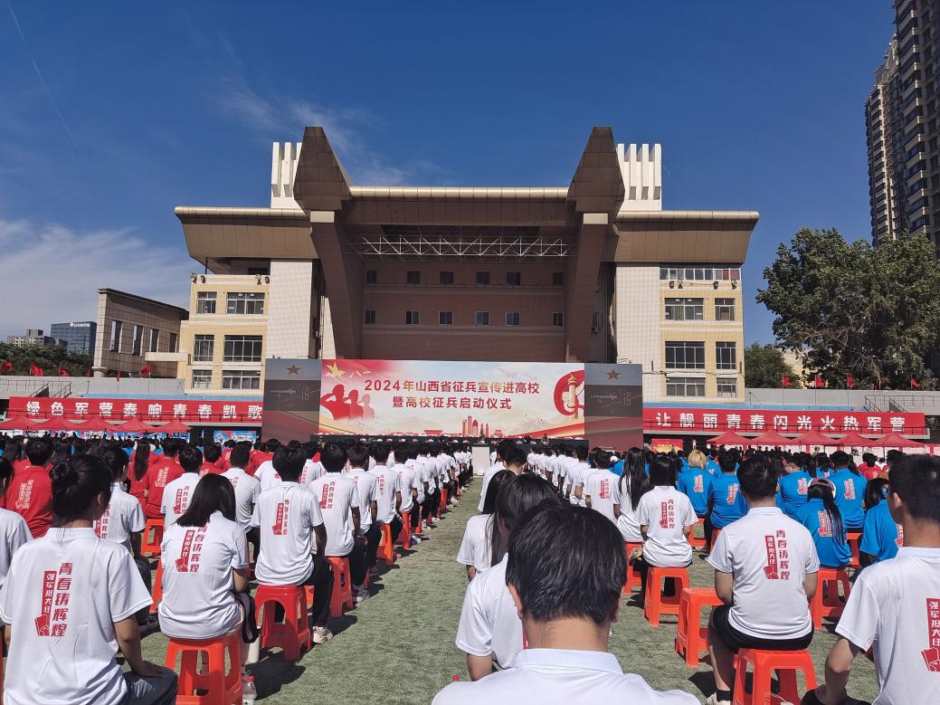 携笔从戎强军报国,逐梦军旅绽放青春。2024年5月31日山西省征兵宣传进高校暨高校征兵启动仪式在太原理工大学举行,我校100名有意愿参军入伍的学生参加本次活动。我校高度重视大学生征兵工作,不断健全国防宣传教育工作体系,多方面开展征兵宣传引导,不断厚植大学生投身国防事业情怀。