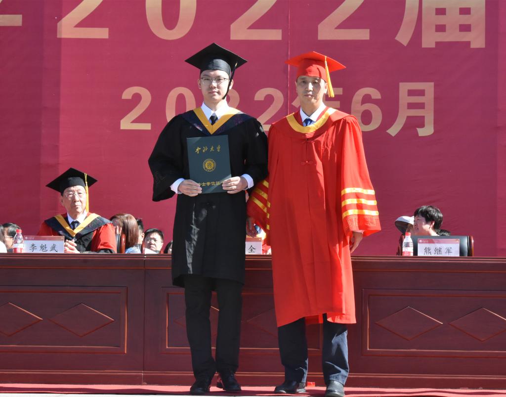 秉敦行之志,不悔韶华四载;以行知为本,共耀辉煌八秩。毕业生代表、机电工程学院卫长竖同学和人文社会科学学院孙欣同学代表所有毕业生分别进行线上线下发言。卫长竖表示,我们定将不负母校的期望,秉承“致知于行”校训,坚定远大理想、刻苦学习、艰苦奋斗、崇德向善,勇担强国复兴使命,书写亮丽青春答卷!孙欣表示,作为新一代的中北人,我们将时刻不忘致知于行的嘱托,在各自的领域里发光发亮。我们将带着母校八十年的荣光,在天南海北书写中北新的故事。