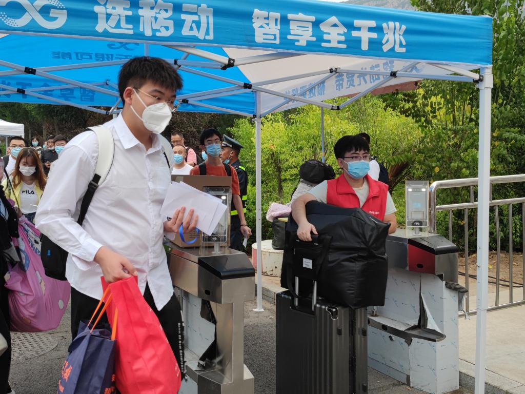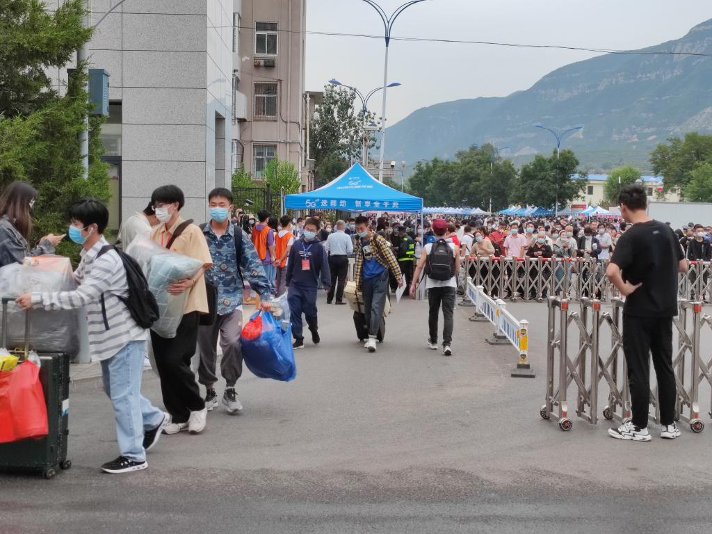 新生们积极配合学校疫情防控工作,在校门外完成身份核验和体温、核查健康码、行程码、同行自查结果、48小时内核酸检测结果、“抵并登记”结果等健康核查工作,所有核查情况无异常后,扫描“场所码”,履行登记手续后,持进校进宿证步行进校,一切工作都有条不紊地进行。