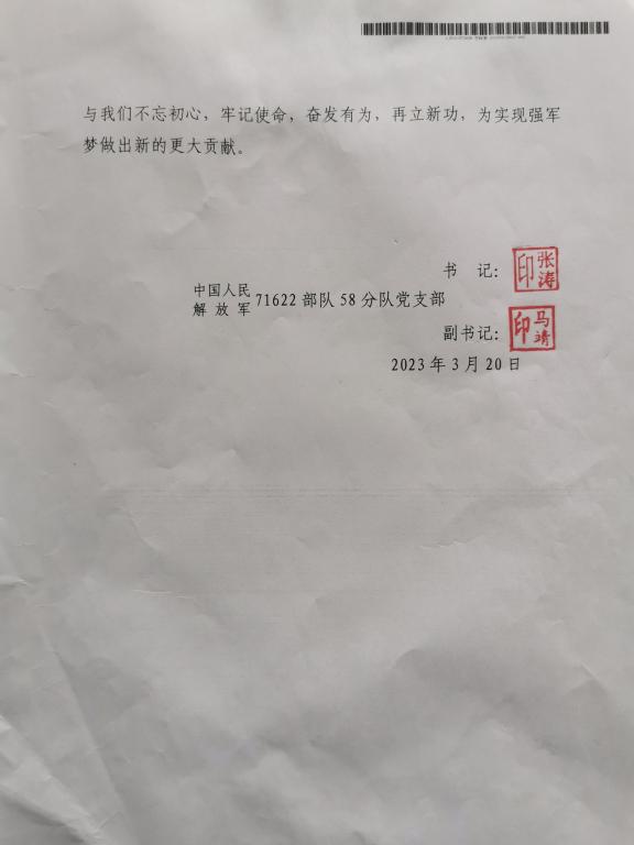 近日,中国人民解放军71622部队58分队党支部给学校武装部发来感谢信。感谢学校为部队培养输送了一大批军事人才,对强军事业做出不可磨灭的贡献。
