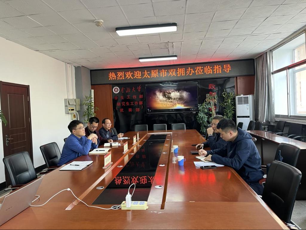 3月30日下午,太原市退役军人事务局党组成员、副局长陈胜军一行来校调研,指导我校双拥工作,校学生工作部(武装部)副部长崔亚参加调研活动。此次调研的主要目的是拟选拔我校作为迎接全国双拥考核验收组的一个验收试点。