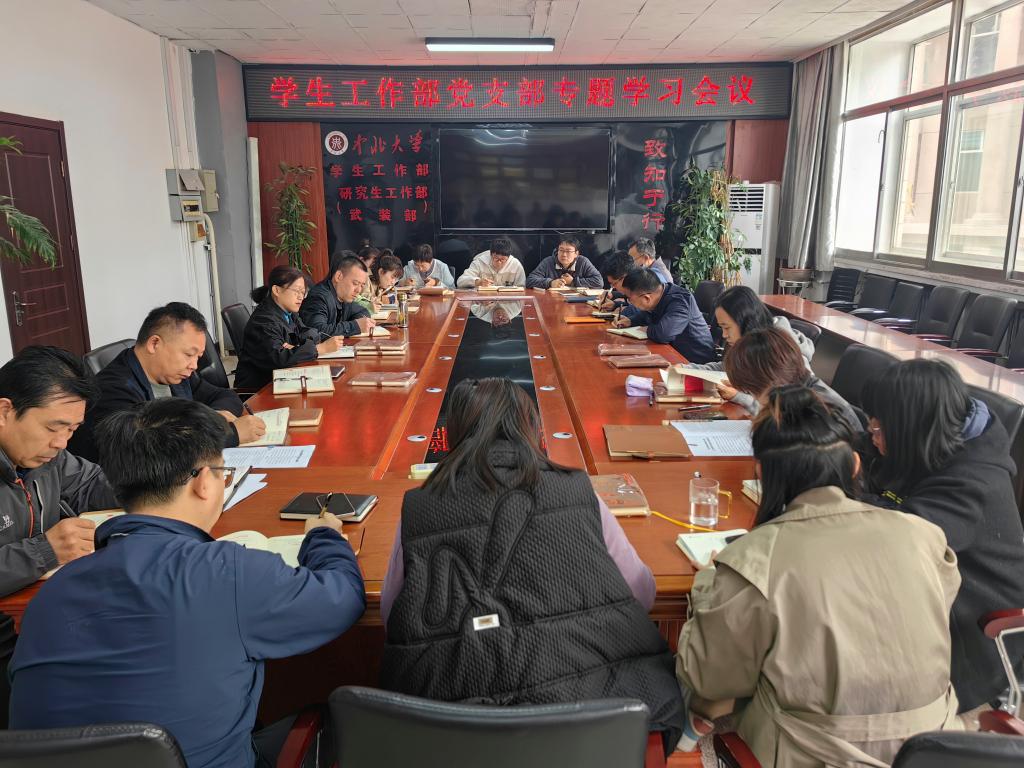 4月13日,学生工作部党支部组织专题学习会,全体党员学习《坚决贯彻总体国家家全观,全力保障中国式现代化稳步推进》文件精神。