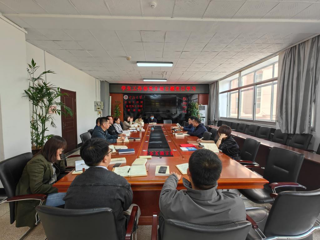 为推进学习贯彻习近平新时代中国特色社会主义思想主题教育走深走实,引导广大党员干部以学铸魂、以学增智、以学正风、以学促干,根据校党委的决策部署,4月18日,学生工作部党支部组织开展主题党日学习会,学习领会贯彻落实校党委的部署,深入学习领悟新思想,党支部书记李俊华主持学习会,支部全体党员参加学习。