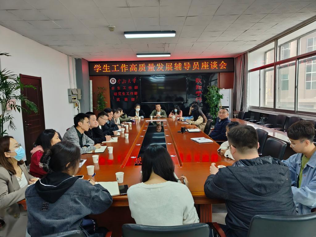 为深入贯彻落实我校《关于在全校深入开展学习贯彻习近平新时代中国特色社会主义思想主题教育实施方案》的文件精神,进一步将理论学习、调查研究、推动发展和检视整改有机融合,切实推动我校学生工作高质量发展,5月5日下午,学生工作部在德怀楼会议组织召开了学生工作高质量发展辅导员座谈会,深入了解我校学生工作中存在的短板,及时改进不足,集思广益,寻求工作改革创新的思路和方法。座谈会邀请2020年和2023年入职我校的新辅导员参加座谈交流,学生工作部相关科室负责人参加座谈,学生工作部部长李俊华主持座谈会。