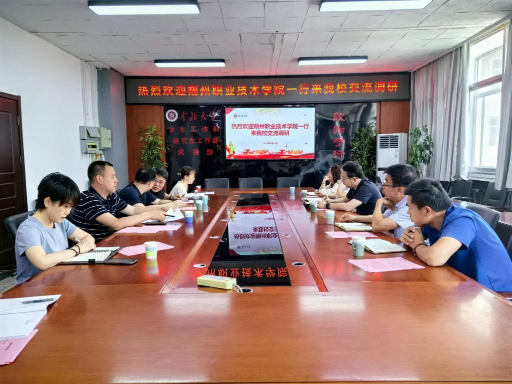 6月19日,朔州职业技术学院副院长胡志强一行来我校就学生工作开展交流调研,学生工作部(研究生工作部、武装部)部长顾宁、副部长崔亚及相关工作负责人接待并开展座谈交流,会议在德怀楼211会议室进行。