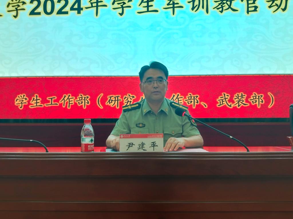 最后,校党委委员、副校长、军训团政委尹建平代表学校党委、行政向全体教官表示热烈的祝贺和衷心的感谢,并就高标准完成好今年的军训任务对全体教官提出了四点要求: