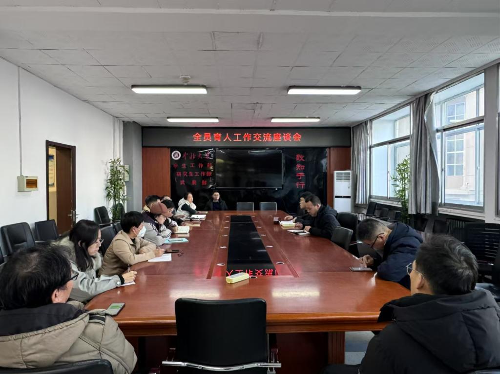 12月24日,学生工作部召开党外人士座谈会,围绕“做实“全员育人”工作,构建思政教育新格局”这一主题听取广大非党员教师的意见和建议。学生工作部副部长崔亚及相关科室负责人参加座谈会。