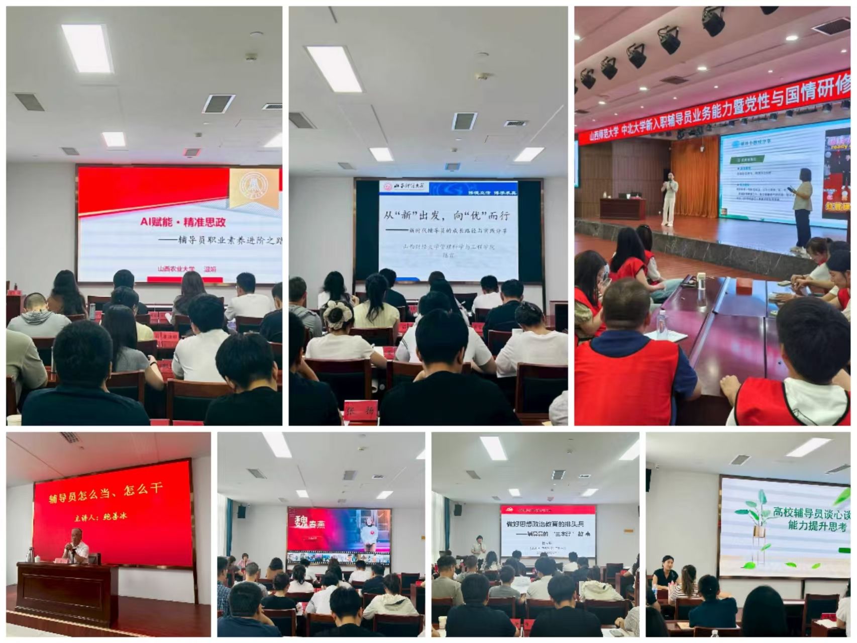 为期三天的培训中,山西大学鲍善冰教授、郑州大学胡波老师、山西财经大学陈霞老师、山西农业大学温娟老师、中北大学杜瑞平和魏春燕老师分别围绕辅导员职业能力提升、谈心谈话技巧、AI赋能·思政教育、红色教育实践等主题作专题讲座,内容涵盖理论前沿、职业实操和人工智能应用,全面提升新入职辅导员的综合素养。
