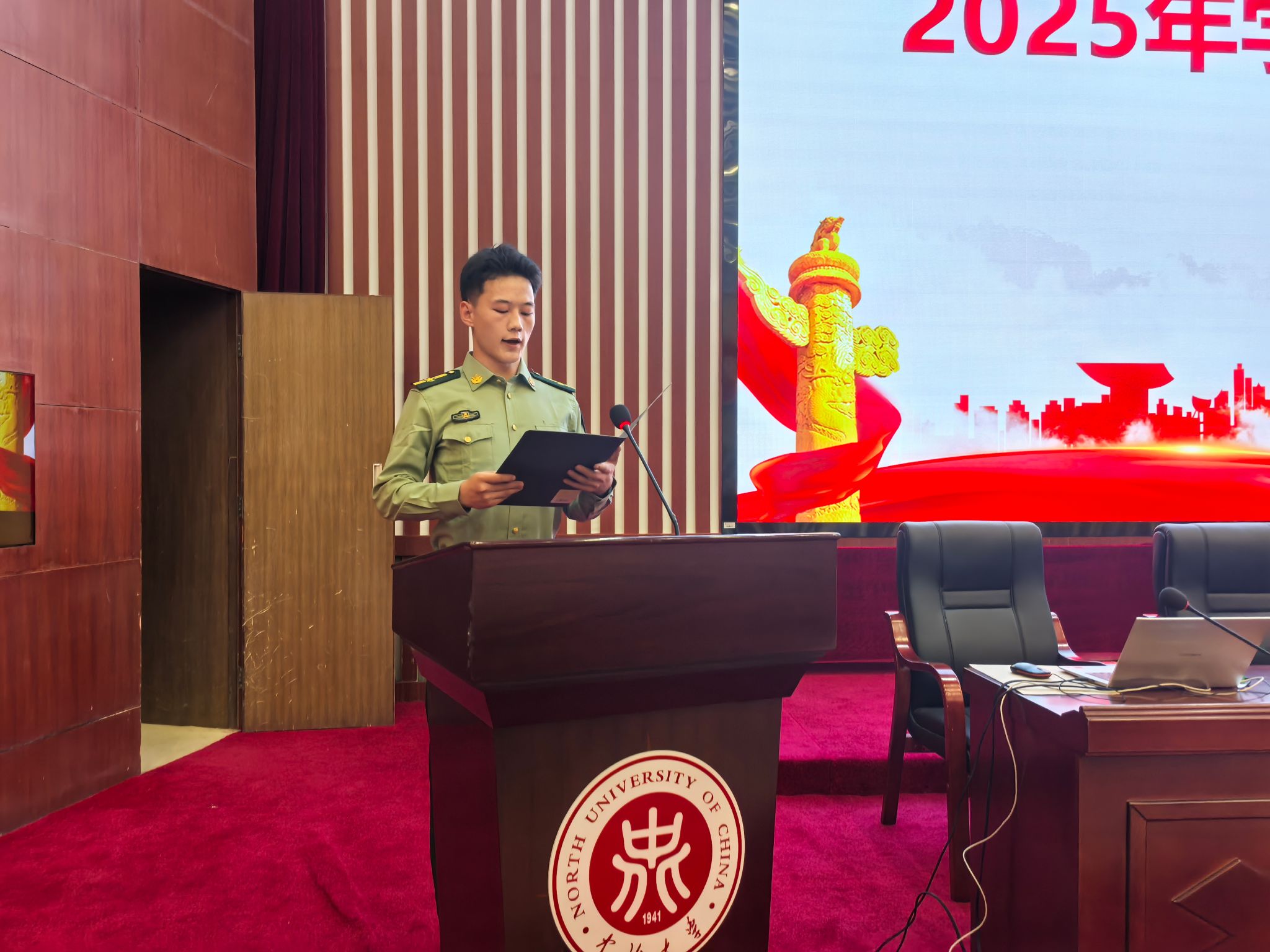 9月6日下午,中北大学2025年学生军训教官动员大会在图书馆五层会议室举行。校党委常委、副校长、军训团政委尹建平教授,学生工作部(人民武装部)部长顾宁、各学院党委副书记及全体军训教官参会,大会由学生工作部(人民武装部)副部长崔亚主持。