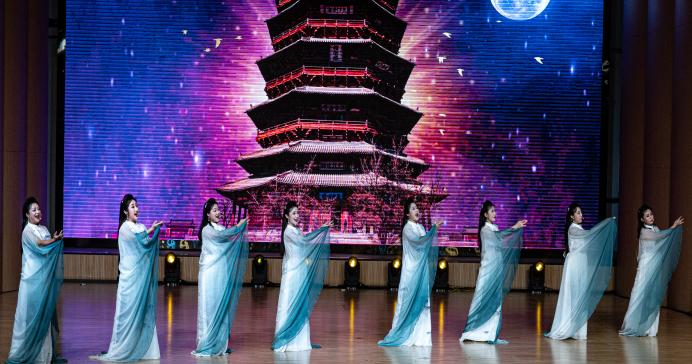 演出在气势磅礴的《盛世鼓韵》中拉开序幕。整场节目融合多样艺术形态,既有彰显山西文化底蕴的表演唱《这一座木塔》,也有妙趣横生的大同数来宝《意外中的意外》,还有高亢激昂的鼓乐《黄河船夫》。晋城市陵川县盲人曲艺宣传队带来的陵川钢板书《太行号兵》和乐器合奏《走向幸福路》,更是以其精湛的技艺和昂扬的精神面貌赢得了阵阵掌声。尤为引人注目的是,中北大学艺术学院教师带来的琵琶独奏《静默之弦》、小提琴独奏《十面埋伏》和高音萨克斯管与钢琴合奏《楚颂》选段,为现场观众带来别有风味的音乐体验。