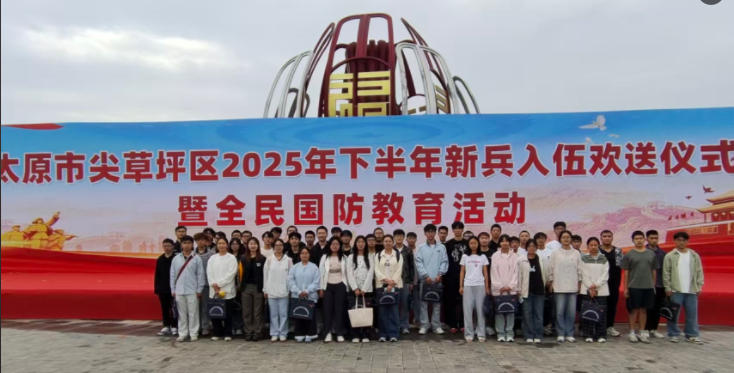 9 月 16 日,太原市尖草坪区 2025 年下半年新兵入伍欢送仪式暨全民国防教育活动在多福广场隆重举行。本次活动以 “从‘新’开始 向‘战’出发” 为主题,由区人武部、区委宣传部等军地部门联合主办,我校 50 余名师生代表受邀参与,在现场接受了一堂生动的国防教育课。