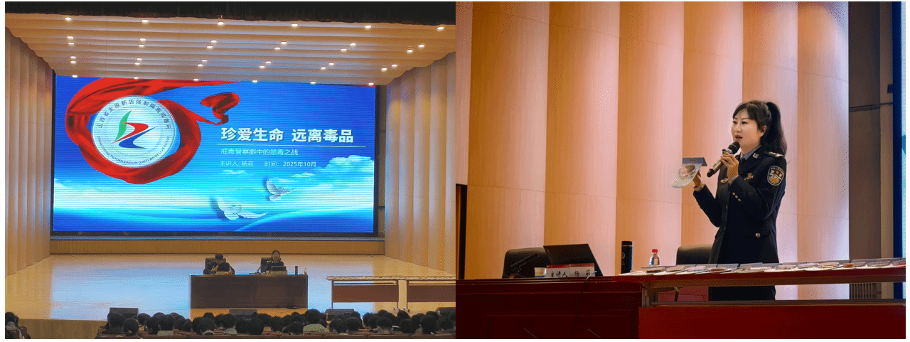 在“以案为鉴,科学识毒” 深度宣讲环节,太原市新店强制隔离戒毒所教育科科长杨莉率先以三起发生在身边的真实吸毒案例切入。案例中,曾与在场学生同龄的年轻人因一时疏忽坠入毒网,最终陷入人生困境的悲剧,让在场大学生深刻意识到:毒品并非遥远的 “传说”,危险往往潜藏在缺乏警惕的 “一念之间”。在充分唤起学生警惕意识后,杨莉科长结合精心准备的图文资料,系统性讲解毒品的分类与特性 —— 从传统毒品的成瘾危害,到合成毒品的隐蔽性,再到伪装成 “奶茶粉”“跳跳糖”“卡通邮票” 等日常物品的第三代毒品(新精神活性物质),逐一剖析各类毒品的成瘾机制、对生理与心理的双重摧残,以及对家庭和社会的严重危害。她特别强调,新型毒品的 “伪装性”“迷惑性” 极强,叮嘱学生务必提高辨别能力,坚决不接受陌生人递来的来路不明的食物、饮料与香烟。