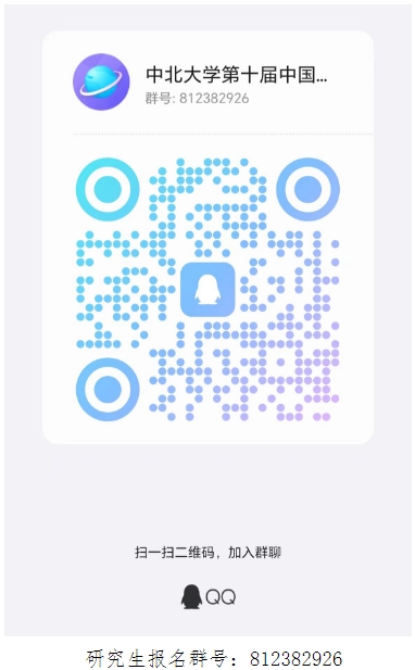请有意报名参赛的同学扫描中北研究生参赛报名群二维码进行报名,并将报名表电子版(见附件1)发送至报名邮箱1191852443@qq.com。
