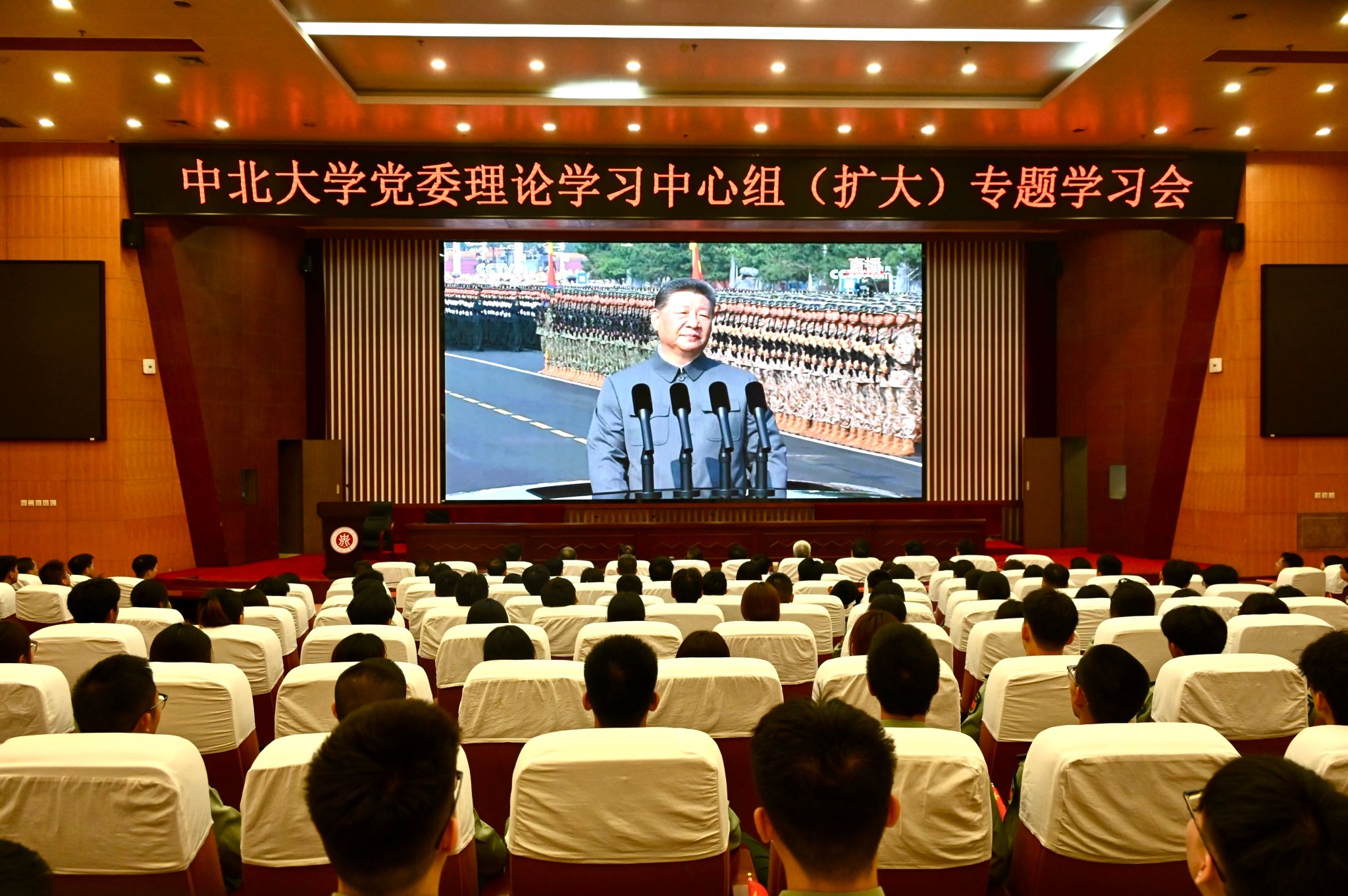 9月3日,纪念中国人民抗日战争暨世界反法西斯战争胜利80周年阅兵式在天安门广场隆重举行。为传承红色基因、厚植爱国情怀,中北大学学生工作部精心组织学校200余名军训团教官大队成员,在图书馆五层报告厅集中观看阅兵直播盛况,共同见证这一承载历史记忆、彰显国家强大国防力量的庄严时刻。
