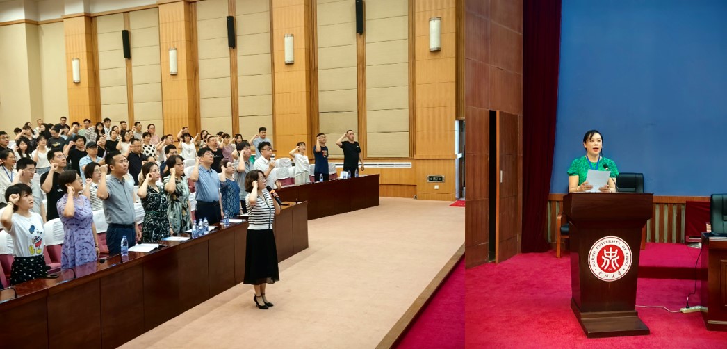 我校第15届全国高校辅导员年度人物获得者魏春燕老师,在开班典礼上带领全体与会辅导员重温辅导员誓词;山西大同大学辅导员郭建艺作为参训辅导员代表发言。