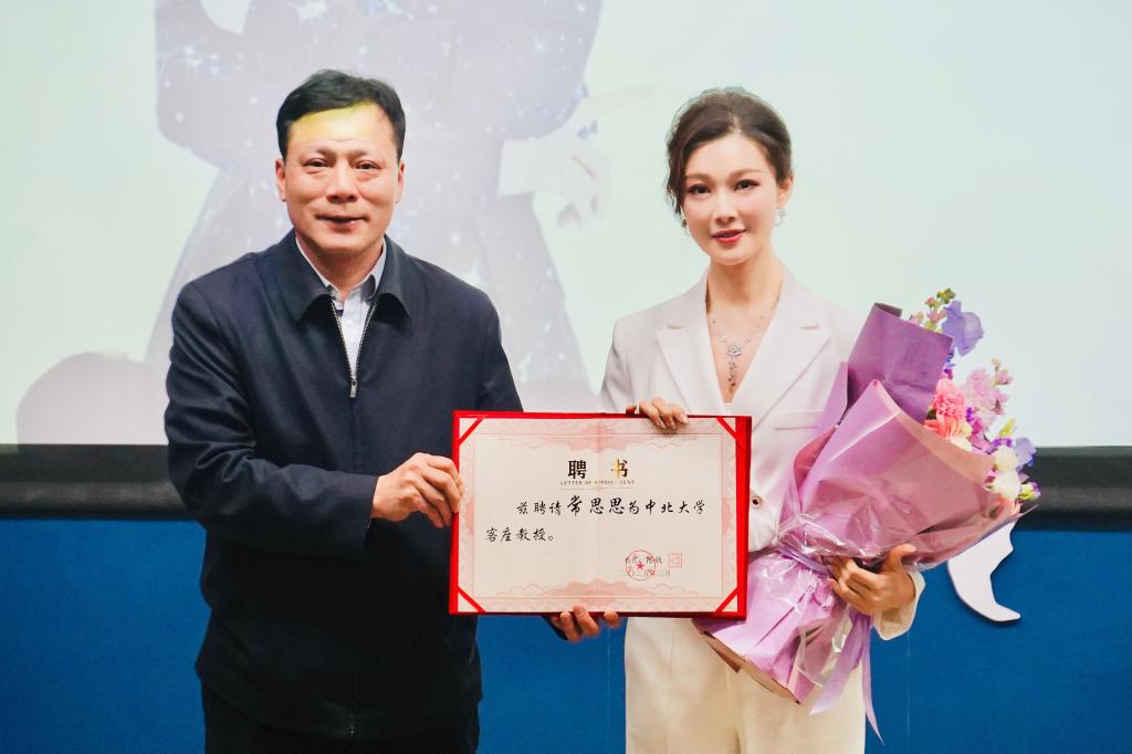 讲座伊始,中北大学艺术学院院长发表了热情洋溢的欢迎辞,并隆重宣布常思思正式受聘为中北大学客座教授及硕士研究生导师。院长亲自颁发聘书,并高度评价了她在声乐艺术领域的卓越成就。院长表示,常思思的加入将为学院师生带来更多高水平声乐指导和前沿艺术理念,进一步推动学院的教学与研究工作,提升整体艺术水平。这一举措不仅是学院人才引进和学科建设的重要里程碑,更是中北大学在追求卓越教育、提升美育教学质量道路上的又一重要突破。