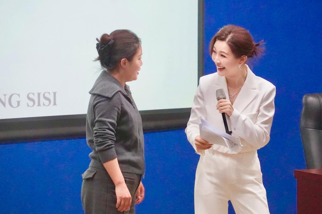 讲座特别设置了实践环节,常思思亲自指导学生演唱,针对他们在声乐技巧和情感表达方面的问题进行了细致入微的指导。她从发声位置、气息运用到情感投入等多个方面进行耐心讲解和示范,让学生们更加直观地感受到声乐的魅力和奥秘。指导后学生们的演唱水平得到了显著提升,现场观众也为他们精彩的表演报以热烈的掌声。